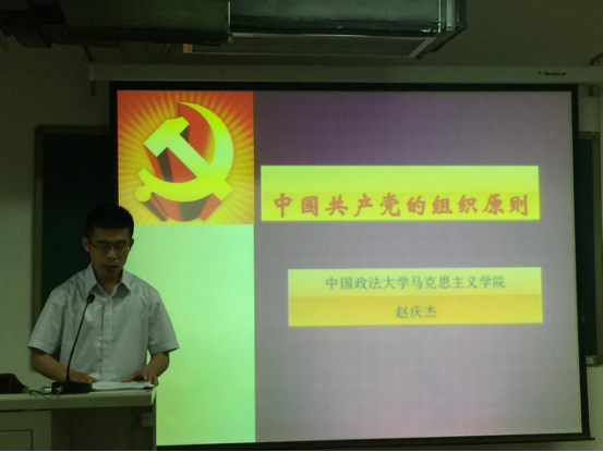 5月19日下午,赵庆杰老师以《中国共产党的组织原则》为主题,从党的组织原则的重要性出发,梳理了民主集中制的形成和发展并结合历史和现实为大家阐述了民主集中制的六项基本原则,呼吁和号召大家学会“读史而鉴今,读史而明今”,最后还总结了新时期坚持和完善民主集中制要注意的问题,通过本专题对于中国共产党的组织原则——民主集中制的深入学习和理解,使同学们的理论水平和思想觉悟都得到了进一步的提高,受益匪浅。
