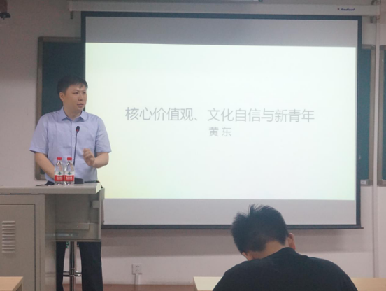 5月19日上午,黄东老师以《核心价值观、文化自信与新青年》为主题,通过引经据典深入挖掘和分析了社会主义核心价值观在中国古代传统文化中的历史渊源并从国家、社会、个人的不同层面深刻剖析和阐释了新时代背景下社会主义核心价值观、文化自信的内涵和重要意义,勉励青年学生在学习科学文化知识的同时要更加注重道德品质的培养,要真正做到弘扬和践行社会主义核心价值观,做新时代的有志青年。