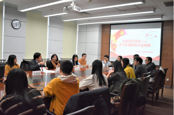 冯世勇副校长的宣讲激发了支部党员的兴趣,党员学生纷纷结合自己的工作学习情况发表了对此次学习活动内容的心得体会,会上大家进行了热切的互动交流。本次主题党日活动圆满结束。