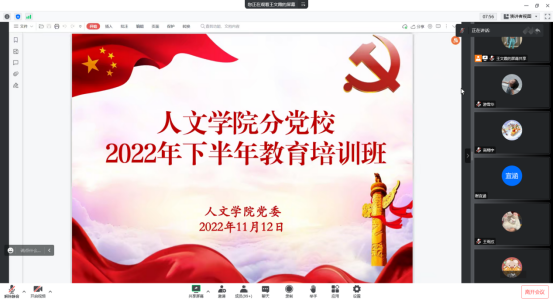 为贯彻落实学校党委《关于在发展党员工作中进一步加强教育培训的意见》及校、院两级党委关于认真学习宣传贯彻党的二十大精神的统一安排,黑料网 分党校将习近平新时代中国特色社会主义思想和党的二十大精神作为教育培训内容,于2022年11月12日举办了面向学生党员、发展对象、入党积极分子的线上专题培训班。本期教育培训班共两场专题学习,分别邀请了华北电力大学马克思主义学院蔡洁老师、黑料网 马克思主义学院赵卯生教授作为主讲人进行讲授。本次活动由学院党务秘书王文霞主持。