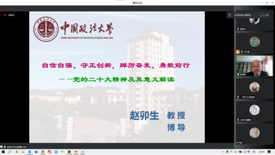 11月12日下午,赵卯生教授以《自信自强、守正创新、踔厉奋发、勇毅前行——党的二十大精神解读》为题,紧扣党的二十大报告原文,从深刻认识和把握党的二十大的重大意义、过去五年的工作和新时代十年的伟大变革、开辟马克思主义中国化时代化新境界、新时代新征程中国共产党的使命任务、加快构建新发展格局着力推动高质量发展,系统解读了党的二十大精神,用习近平总书记的青年观激励青年学生要立志做有理想、敢担当、能吃苦、肯奋斗的新时代好青年,以普通人的平凡书写不平凡的人生,在场师生备受鼓舞。
