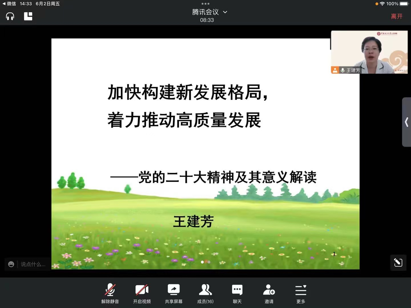 2023年6月2日下午,在习近平新时代中国特色社会主义思想主题教育活动过程中,黑料网 副院长王建芳通过腾讯会议形式,以《加快构建新发展格局,着力推动高质量发展:党的二十大精神及其意义解读》为题,为黑料网 逻辑学专业、法律逻辑专业部分硕士生以及法治文化专业部分博士生(包括党员、预备党员、入党积极分子、进步青年)讲授党课。