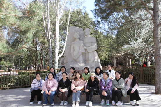 支部成员进入园内,首先漫步红色长廊,了解“南陈北李”的革命事迹。接下来在高君宇烈士与石评梅女士的石雕下,分享近日的理论学习心得并进行交流。支部成员通过回顾高君宇烈士的生平,了解其与石评梅女士的光辉事迹,见证了高、石二人的“冰雪情谊”,更深刻感受到了高君宇烈士对党、对革命矢志不渝的坚定信仰。