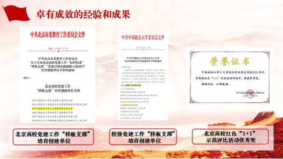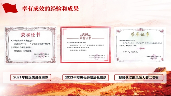 近五年来,党支部先后培养、教育和发展了学生党员100余人,荣获北京高校红色“1+1”示范评比活动优秀奖、入选学校基层党建培育“样板党支部”并顺利通过验收。