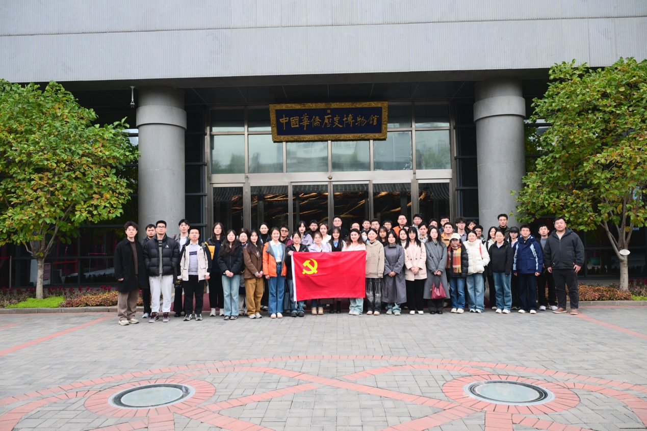 活动尾声,全体党员与党旗合影留念,背景是记录着先辈奋斗足迹的华侨历史博物馆,先辈们的奋斗精神烙印在每一位青年党员的心头。大家一致认为,华侨先辈们身上所展现出的不畏艰难、开拓进取、心系桑梓、忠诚报国的精神,是中华民族宝贵的精神财富,与中国共产党人为人民谋幸福、为民族谋复兴的初心使命高度契合。
