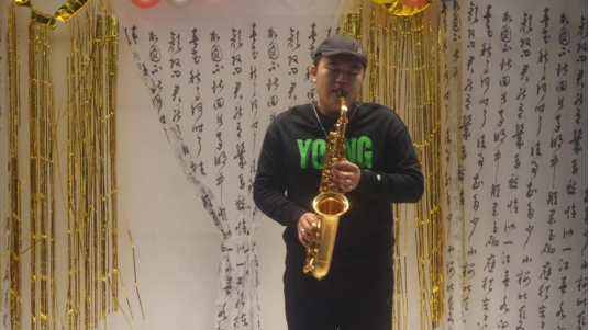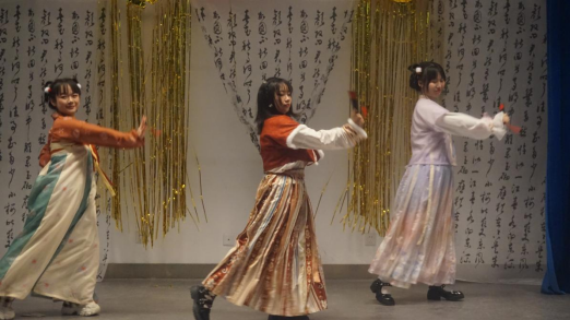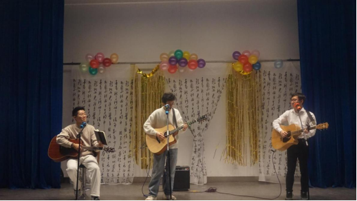 本小节的第一个节目是吕新龙同学等带来的民谣吉他弹唱串烧,激情演唱了《姑娘》等大家耳熟能详的经典曲目,并与来自俄罗斯的同学共唱《喀秋莎》一曲,演唱过程情感真挚充沛,掀起现场热烈的互动气氛。接下来,陆瑶等同学为大家献上的一支中国古风舞蹈《花月成双》,她们身着古风舞衣,轻舞飞扬,以其独特的韵律和柔美身姿,让人仿佛穿越时空,领略到中国古代的华美风华。下一个节目是由林子昕同学带来的萨克斯独奏《月半小夜曲》,以别样的方式,用深沉洪亮的萨克斯再现了李克勤这首脍炙人口的经典曲目。最后,是李腾霄同学的独唱曲目《慢慢喜欢你》,他用轻慢舒缓的节拍和娓娓动听的曲调,带我们体会到细水长流般的点滴感情之美。