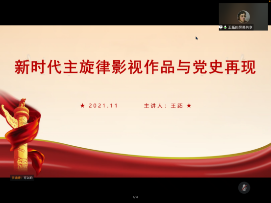 11月21日下午,王跖教授以《新时代主旋律影视作品与党史再现》为主题,从新时代主旋律影视作品与党史相结合的角度给大家带了一场别开生面的专题党课,通过对多部优秀主旋律影视作品片段的解读,带领大家回顾特定的历史时期、事件和人物故事,同时表达了新时代影视工作者宣传党史的责任和担当。