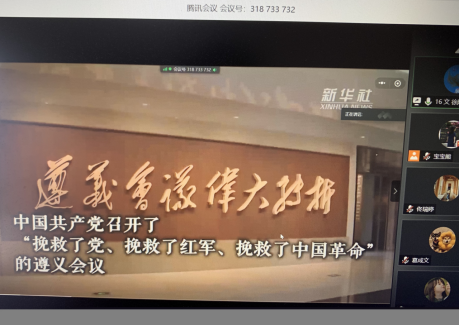 本次培训首先为大家播放了介绍遵义会议及纪念馆的相关视频,随后通过线上VR全景对遵义会议纪念馆进行参观,伴随详细的语音讲解,带领同学们参观了“战略转移、开始长征”“遵义会议、伟大转折”“转战贵州、出奇制胜”“勇往直前、走向胜利”“遵义会议、光辉永存”5个展厅,全面回顾了遵义会议作为我们党历史上一个生死攸关的转折点的光辉的历史。