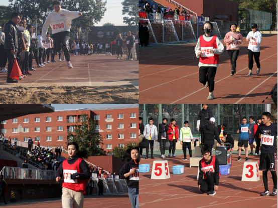 绿色竞技场,青春无极限。在径赛项目中,同学们屡创佳绩。男同学们表现出色,饶剑涛同学取得了男子1500米第3的成绩,郎朗同学和郝凯歌同学也分别获得了男子100米决赛和男子3000米的第6名。女同学们也不甘示弱,何怡翔同学和姚欣汝同学以顽强的毅力,分别获得了女子1500米的第1名和第3名;傅丹阳同学也取得了女子800米第2名的好成绩。接力项目中,同学们团结一致,齐心协力,最终赢得了男子4*100米接力第4,女子4*100米接力第2的荣誉。
