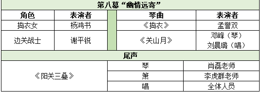 最后,在琴箫合奏《阳关三叠》“劝君更尽一杯酒”的大合唱中,全剧和本场音乐会都步入了尾声,依依惜别。