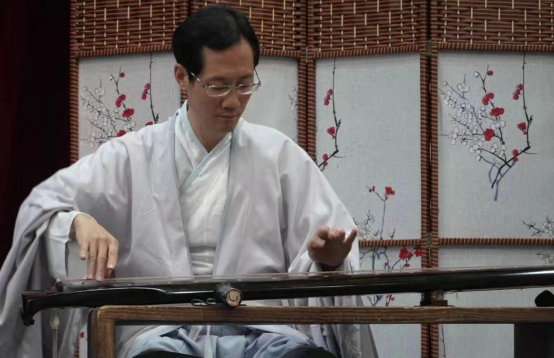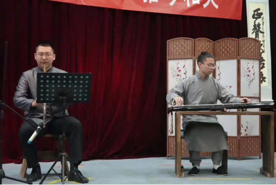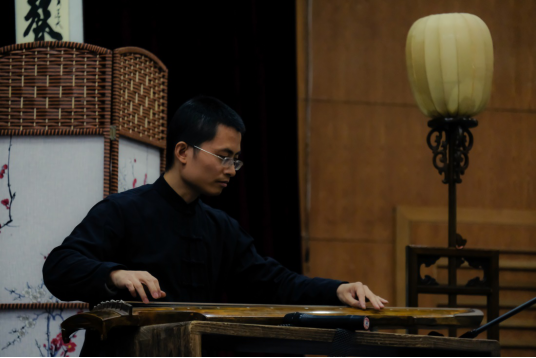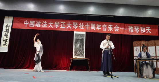 指导老师李虎群老师开场致辞,他首先说明本次音乐会是一台由肖磊老师编排的古琴音乐剧,以此将一些重要的古琴曲目一一加以生动展演,这可以说是本次古琴音乐会的最大匠心,亦是国内首次;他还简短回顾了琴社十年发展历程,并感谢为琴社做出了无私奉献的所有老师与琴社新老社员,深切表达了对琴社未来的殷殷期许。