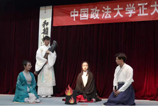 中场休息期间,在伴舞中进行了琴箫合奏《不染》,用一支现代曲活跃气氛;随后的一曲《兰亭序》,惠风和畅,宣告下半场的开始。