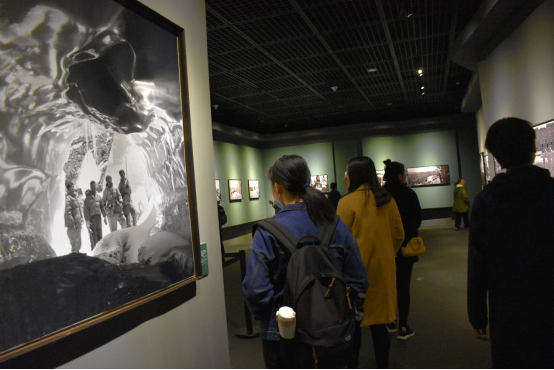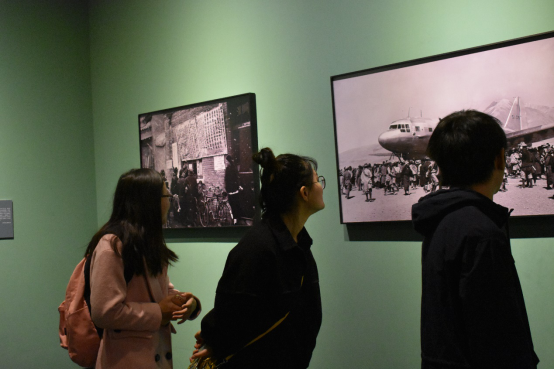 在“国家记忆照片展”中,大家看到了许多生动有趣的历史性时刻。谢先治同学认真观赏了这些穿越时空、静置眼前的黑白画面,看到了抗战时期团结一致、奋勇向前的中华民族,还通过“开国大典”的影片,体会到了在天安门城墙上,毛泽东宣布中华人民共和国成立的慷慨激昂,而当年毛泽东讲话的话筒静立在影片前,无声却有力地诉说着那个年代的伟大故事。