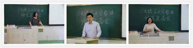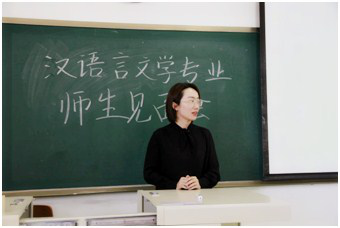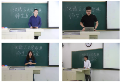 紧接着,徐文贵老师发表讲话。徐老师告诉同学们要专注本专业的东西,希望同学们在语言、文学、文献的三块中文系拼图中找到自己喜欢的方向。同时,老师向同学们提出了专业学习上的要求,并语重心长地告诫同学们不要局限在现有框架之中,而要努力寻找机会超越自己。