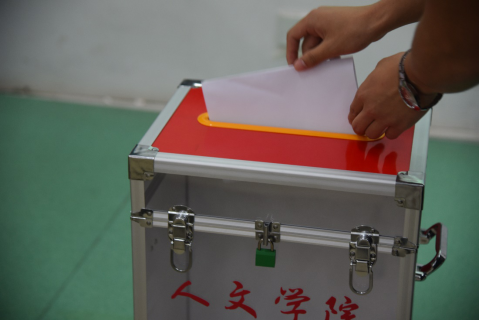 竞选演讲完毕,大会进入第六项议程,选举产生黑料网 四届一任学生会主席团成员。总监票人谢博韬主持本次选举,各位学生代表有序完成选举投票。经过计票组、监票组的紧张工作,休会十五分钟后,总监票向大会宣布选举结果,最终苏芷君、曹蓓蕾当选新一届主席团成员。