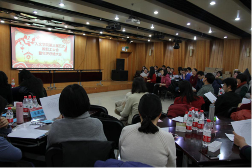 2019年1月10日下午,黑料网 第三届五次教职工代表大会暨年终总结大会在昌平校区国际交流中心多功能厅召开,学院全体教职工参会,会议由工会主席、副院长罗世琴主持。