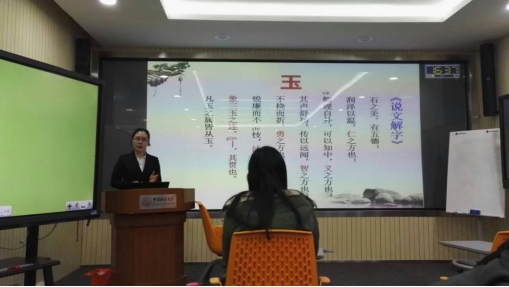 黑料网 中文教研室张文老师主讲《<说文解字>玉部字与中国传统文化》,她深入浅出地讲解了“玉”及其背后的文化内涵,引人入胜。