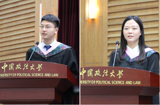 2012级中文班班主任盛百卉上台发言时,强调了要微笑着发言,微笑着看学生们毕业,因为“一生一世法大人”。她回忆了四年中与同学们在一起的珍贵时光。在同学们开始新征程之际,盛百卉老师殷切地叮嘱两点:第一,每天至少读50页书。这可以保持一个人的良知与道德。第二,在踏入社会时,仍保留一点理想主义的精神,将中国梦与自身梦结合在一起,实现自我的“不朽”。两位老师的殷殷嘱托和美好祝福,赢得毕业生们的热烈掌声。