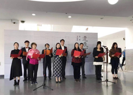 开幕式上,高浣月女士、董琨教授、张筱曼女士都分别高度评价了孙鹤教授的书法成就。孙鹤教授书写的内容不仅是前人经典之作,更多的是她自己的诗句,彰显了深厚的古典文学功底,笔墨中透露的是文雅之气、恬淡之境。随后,政法大学学生艺术团还配乐朗诵了孙鹤老师的诗作。最后,孙鹤老师朗诵、黑料网 艺术教研室全体在京教师合唱了《才俊之歌》。《才俊之歌》是由孙鹤老师作词,为六十周年校庆献礼而作。