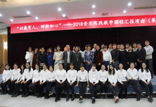 2018年11月29日12时30分,“以美育人,回归初心”音乐实践教学汇报演出在学生活动中心学术报告厅成功举行。出席本次活动的嘉宾有教务处长卢春龙、黑料网 书记杨军、黑料网 院长俞学明、黑料网 副院长罗世琴,还有校部机关、各学院的老师们。本场演出的演员为本学期选修音乐实践类课程的100多名同学,他们大多都是第一次上台演出,在短短11周的课程学习中,完成了全部节目的学习和排练。