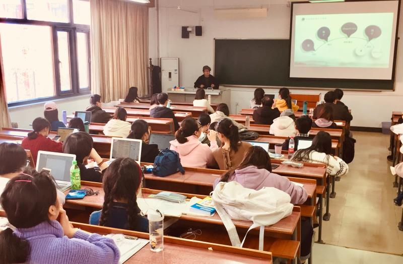 姜蕊老师主要研究领域为中国画的创新与实践和中西绘画图式的比较,其作品曾多次在国内外展出、获奖,并被国内外多家机构、和个人收藏。此次讲座,姜老师以中国画的基本图式作为切入点,阐述了如何通过我国本土化的视角和文化来理解和观看中国画,以构建基于我国传统文化的对中国画的正确观照方式。期间她首先从极具中国文化特色的“箸”和“瓷器”入手,与学生热烈互动,引出“图示”概念。随后,姜老师为学生深入浅出地介绍了中国画的图式,分析了中国画的简与白、静与雅中蕴含的特殊审美韵味,以及中国画独特的审美方式。通过对个人创作和欣赏实践的分享,姜老师阐释了中国画传承与创新的关系,并且极富感染力地将中国画独立于世界艺术之林的艺术价值和文化意义传达给了学生。