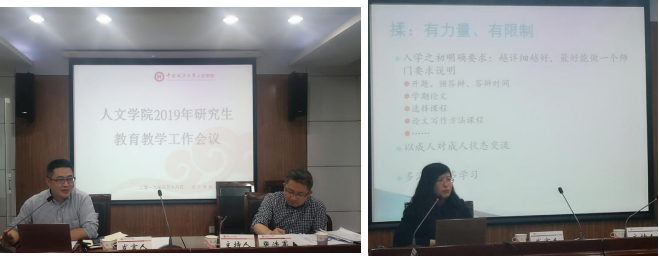 随后,张永然副院长和许晶晶老师介绍了研究生心理健康问题识别与疏导工作的相关情况。张老师首先从宏观层面分析了当下研究生的心理健康状况,指出了未来学生心理健康工作值得注意的问题。接着许老师详细分析了当代大学生的心理特点,就心理工作的注意事项和师生沟通环节可以采取的具体措施与老师们进行了交流,并提出了相应的应对方案。
