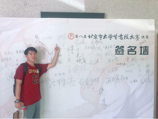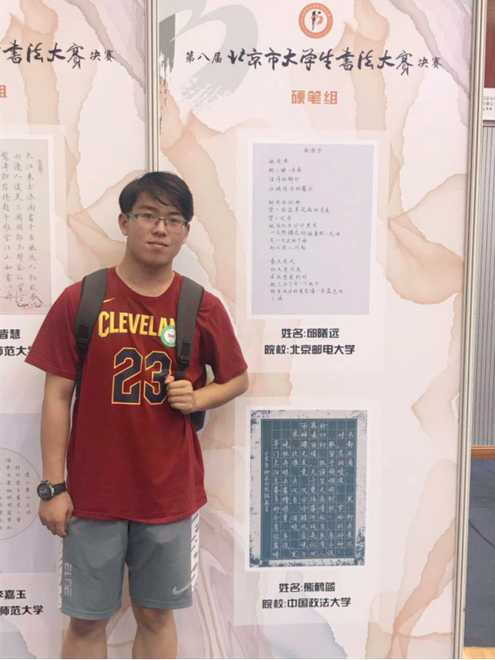 本次大赛硬笔组初赛共92人参加,仅10人入围决赛,入围比例为所有组别中最低的一组,而且与软笔组不同,硬笔组选手不分专业、非专业,所有参赛者需同场较量,因此竞争十分激烈。此外,硬笔组仅有定题书写比赛环节,难度非常高,对选手的能力和心态是极大的考验。熊鹤蓝同学作为首次参赛的大一选手,保持了平和的心态,在一小时的定题书写环节中,克服了参赛经验缺乏、选题限制较多等方面的种种困难,作品完成得十分出色。在高手如云的硬笔组中,熊鹤蓝同学最终获得三等奖的成绩。赛后,熊鹤蓝同学积极总结经验,期待继续在专业老师的指导下进行书法学习,对以后的创作充满信心。