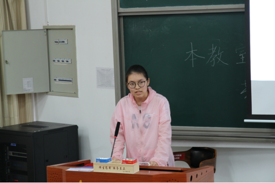 汉语言文学专业本科生韩笑代表2019级本科生发言。她向大家展示了自己对于“汉语言文学”这一专业名称的解读,并表示法大中文人将在法治氛围的熏陶下把中华传统文化与法治社会建设融会贯通,立身法治建设前沿,勾勒青春,落笔写下法治中国的辉煌新篇章。