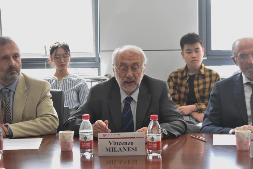 Vincenzo Milanesi院长对俞学明院长和许兰处长的讲话深表赞同,并做了积极回应,随后他对帕多瓦大学的历史、学术研究、合作交流、中国办公室的工作内容以及FISPPA学院的国际化特色等做了详细介绍。