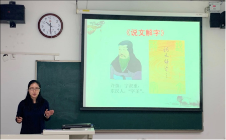 张老师的课程话题是《说文解字》的玉部字与中国传统文化。张老师也在一开始提到了课程的介绍,之后从介绍《说文解字》入手重现比赛课程,还分享了自己的参赛经验。张老师的授课能够重视课程的外在关联,在介绍“玉”时通过完璧归赵、《芈月传》、奥运金镶玉奖牌等听众身边热门的事件切入。张老师还介绍了自己独特的经验,即携带道具。在重现的最后,张老师回顾了课程内容,留了思考题,并介绍了进一步的参考文献。课程完整,且思考题有趣、令听众印象深刻。
