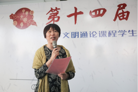 开幕式伊始,在主持人俞学明介绍现场嘉宾后,黑料网 中华文明通论课程组负责人罗世琴致辞欢迎了现场嘉宾和观众,并对“中华文明通论”课程进行了简要介绍。她讲到,“中华文明通论”是黑料网 开设的通识必修课之一,以培养具有深厚社会责任感与人文情怀的学生为目标。一直以来,“中华文明通论”课程组都秉持着“建设‘有灵魂’的通识教育”的目标,使同学们自觉、主动地去做中华文明的传承者、继承者、创新者、开拓者。为此,课程组每学期都会围绕教学内容开展实践活动。本届“中华文明季”由中华文明大戏、中华文明手绘海报展、中华文明舞台剧展演、中华文明手工作品展以及与国家图书馆古籍保护中心合作开展“走近四库全书”五个系列活动组成。最后,罗世琴代表“中华文明通论”课程组向支持和参与本次活动的老师、同学表达了诚挚的感谢。
