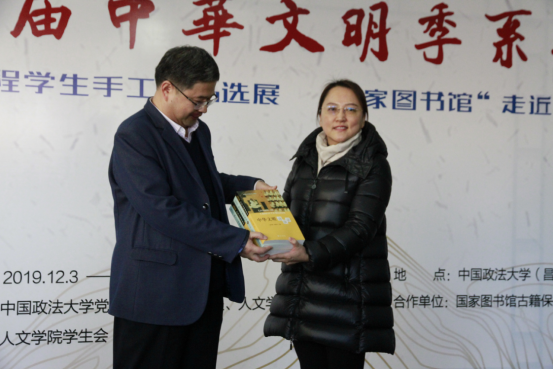 与会嘉宾发言后,林世田与宋婧博分别代表国家图书馆与黑料网 以书会友,互赠礼物。我校所赠礼物为黑料网 两部自编特色教材《中华文明讲演录》《西方文明讲演录》,国家图书馆所赠礼物为馆编《宋端平本楚辞集注》。