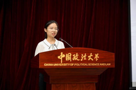典礼第七项,新生代表2021级法治文化专业研究生黄琼芬发言。四年从昌平到海淀,黄琼芬切实地感受到了法大的“小而美”,对“研究生”代表的涵义也有了深刻的认识。通过学习和实践,明确了研究生学习的目标,表达了自己对青年人责任感的重要性的认识,最后,黄琼芬祝愿老师身体健康、工作顺利,同学们学有所成、前程似锦。