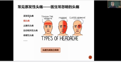 张庆奎医生围绕人们常见的“头痛”问题展开,介绍了“原发性头痛”和“继发性头痛”的症状及常见的几种病状表现。接下来,围绕成年人多发的“原发性头痛”——偏头痛,张医生从发病原因、常见症状、发病率、发作时间等方面进行了具体的科普。