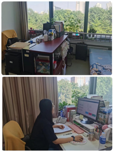 5月19日,黑料网 本科生辅导员吴紫夷老师入住学校,由于学校住宿条件紧张,只能暂住在办公室,居住条件非常有限,窄小的行军床填满了办公室最后的空隙,也为办公室增添了一丝“家”的温度。在住校第二天,临时接到我校表厂学生宿舍区人手不足的通知,吴紫夷老师又转战入住表厂宿舍区开展相关工作,一头是表厂宿舍区的支援工作,另一头是学院内的工作,因此吴紫夷老师只能通过乘坐闭环班车,校园、表厂两边跑,及时传达消息,与同学谈心谈话,坚守党员先锋值班岗,用陪伴与爱守护在健康安全的第一线。