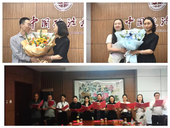 艺术教研室主任王莉代表全体艺术老师向孙老师致以最崇高的敬意和感谢,并承诺将会接好接力棒,为法大的美育事业继续奋斗。李京泽、高文婷、姚灵等老师在感叹时光流逝的同时,对孙鹤老师荣休有万般不舍,希望孙老师能够放心,青年教师们会把孙老师的情怀与精神传承下去。他们祝福孙鹤老师在新的人生旅程中开启更多的“高光时刻”。