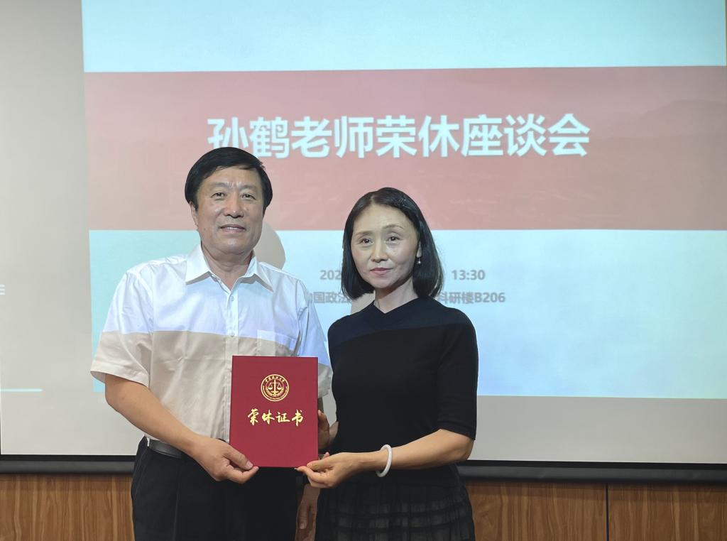 学高为师、身正为范,冯校长代表学校和个人表达了对孙鹤教授的诚挚感谢,感谢她以严谨的治学态度、深厚的学养功底、高尚的人格情操,培养出一批又一批法大优秀学子,影响了一代又一代法大人。同时,冯校长希望孙鹤教授“人退心不退”,继续关心关注学校学院建设发展,关心关注年轻一代的成长,祝福孙鹤教授荣休后生活幸福,取得更高的艺术成就。