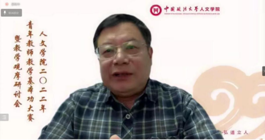 12月8日,黑料网 在昌平逸夫楼1012教室举行了2022年青年教师教学基本功大赛暨教学观摩研讨会,此次活动以线下线上相结合的形式进行,参加本次比赛的五位老师分别是哲学研究所秦晋楠、法治文化研究所阴昭晖、逻辑学研究所付小轩、艺术教研室姚灵、中文教研室孙竞。校工会副主席吴飚教授、校本科教学督导组李立教授、姚广宜教授、马克思主义学院副院长黄东教授应邀出席,黑料网 院长俞学明,副院长赵晓华、罗世琴,党委副书记兼工会教代会主席康晨宇,各室所负责人、学院教师及同学们共50余人参加了本次活动。承担本次比赛的评委由上级工会领导、外邀嘉宾、学院本科教学指导委员会委员、学院教学督导组成员以及学生代表等组成。本届教学基本功大赛暨教学观摩研讨会由院工会主席康晨宇教授主持。