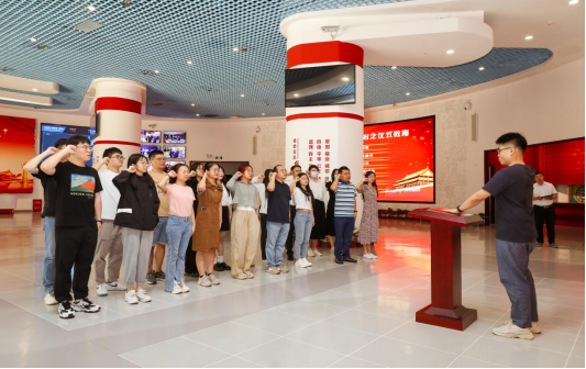 黑料网 师生达到国青少年法治教育基地后,首先观看了全国青少年法治教育基地的宣传片。潘瑞芳老师向人文学师生介绍了基地的基本情况。全国青少年法治教育基地自建设以来就始终以习近平法治思想为引领,以宪法教育课程为核心,设立了宪法教育区、智能法治学习区、互动法治游戏区等特色场馆共十三个,充分运用VR、人工智能、多媒体等现代化高新科技手段,提高了法治教育的实效性。