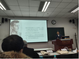 第五位比赛选手是哲学研究所的梁辰老师,他讲授的题目是“《逻辑哲学论》与‘真假美猴王’”。梁辰老师通过《西游记》中“真假美猴王”的片段,引入《逻辑哲学论》中关于“事”“理”关系的讨论,从而介绍早期分析哲学中的名人名著、重要观点和核心论证,以期打开学生思路,使其触类旁通、活学活用。在本次课程中,梁辰老师的教学思路集中体现在三个方面,即从中国古典到西方现代,从形式巧合到实质关联,从破除俗见到建立正解。在具体的授课环节中,梁老师主要围绕三方面展开教学(1)维特根斯坦其人其书 ;(2)《逻辑哲学论》中的本体论 ;(3)《逻辑哲学论》的伦理宗教意涵教授中灵活穿插美育熏习与课程思政环节。在授课过程中,梁老师简述了维特根斯坦的生平和《逻辑哲学论》的成书,点出了《逻辑哲学论》书名与斯宾诺莎著作的形式关联,介绍了1927 年张申府翻译的 《名理论》,着重辨析了核心术语事实与事态,阐释了事物的内在属性和外在属性,论述了《逻辑哲学论》与斯宾诺莎思想的实质关联。
