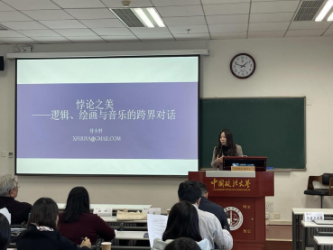在教学展示环节,首先登场的是来自逻辑研究所的付小轩老师。她的上课题目是“悖论之美——逻辑、绘画与音乐的跨界对话”。通过结合逻辑、绘画和音乐领域,本次课程从直观的绘画和音乐切入,引导学生深入理解抽象逻辑悖论的核心内涵及其在跨学科中的启发性作用。生动的实例,紧凑的课堂设计和有趣的互动环节,有助于激发学生的学习兴趣并拓展其思维边界。课程主要分享了三方面的知识:(1)了解哥德尔不完备定理的逻辑基础及自指句的思想;(2)认识艾舍尔绘画中视觉递归于错觉的逻辑结构;(3)探索巴赫音乐中对位法的递归性与层次感。最后付小轩老师对课程进行了总结,强调课程探讨了逻辑悖论在形式系统中的局限及其跨领域的美学意义,通过哥德尔、艾舍尔与巴赫的案例,展现悖论如何推动逻辑、绘画与音乐的跨界对话,并提出今后的课程会引入更多的互动环节,如即兴创作等,以增强逻辑与艺术的结合体验。