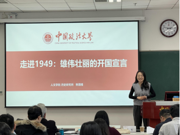 第四位参赛选手是历史研究所的焦雨楠老师,她讲授的题目是“走进1949——雄伟壮丽的开国宣言”。课程是《新中国史》中的一节,旨在通过理论教学使学生认识中华人民共和国几十年来的风雨,对中华人民共和国史有一较完整的认识,更重要的是加强和推动课程思政,以及培养学生的思维,拓宽其视野,提高他们发现问题、分析问题及解决问题的能力。本次课程围绕“中国人民从此站立起来了”展开。焦雨楠老师强调“中国人民从此站立起来了”是经过高度概括的雄伟壮丽的开国宣言,它经常用于描述新中国成立的意义。一提及新中国的成立,大家在意识里自然会具体地聚焦开国大典。所以开国大典、新中国成立和“中国人民从此站起来了”三者之间联系密切。通过举例子的方法,焦老师抛出一个具体的问题,帮助大家明确“中国人民从此站立起来了”首次出现于1949年9月21日中国人民政治协商会议第一届全体会议的开幕式上,是毛主席的开幕式致辞。随后,为了加深同学们的印象,焦老师播放了该视频片段并带领同学研读主席的开幕式致辞,帮大家捋清楚此致辞的逻辑、语言,感受70多年前建国前夕主席对全国形势的分析、解读,以及对新中国未来的展望。通过新中国史课堂的学习,在很大程度上帮助大学生习得正确的国史知识,树立正确的历史观,进一步增强民族自信心、自豪感的同时,自觉抵制历史虚无主义。