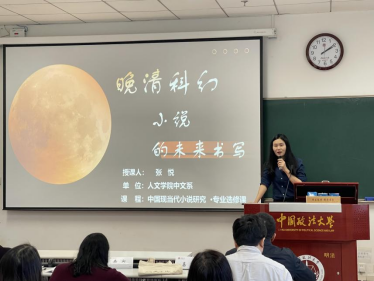 第二位参赛的是中文教研室的张悦老师,她的授课题目是“晚清科幻小说的未来书写”。该课程是中国现当代小说研究课程“晚清小说研究专题”中的第二节,在此之前学生已经学习过晚清小说发展的基本状况,本节课将着重把科幻小说作为晚清小说的一个样本,通过分析晚清科幻的未来书写来窥探中国小说的现代化转型,以及在这种转型过程中晚清知识分子在中西文化之间的艰难选择与矛盾心态。在开场,张悦老师以大家熟知的国内外科幻大片引入,随后展示晚清科幻小说《新石头记》中“贾宝玉开潜艇”的插图,激发学生兴趣,引导学生进入脑洞大开的另类晚清科幻。随着课程的开展,张悦老师以晚清科幻小说《新石头记》为例,展示“科幻红楼”的基本情节以及在衣食住行等方面的新奇设定;从吴趼人的身份(谴责小说家)入手,阐释了为何一位如此关注现实的作家,会写出一部幻想性的作品,解答了为什么《新石头记》在写后半部“幻想”之前,要写前半部的“绝望”,并指出根源是来自对现实的不满和焦虑,继而转向“理想国”的乌托邦想象。晚清的“强国梦”越是美好,越反向映照出的社会现实就越是不堪。最后,张悦老师通过课程总结到:晚清文学处于一个中西交融、从传统向现代转型的过渡阶段,在晚清的科幻上尤其体现出一种混杂性矛盾性。理性让晚清知识分子不得不承认西方文明的先进技术,但感性又驱使着他们回到传统文化当中翻箱倒柜,试图从故纸堆里找到可以超越西方的遗产。