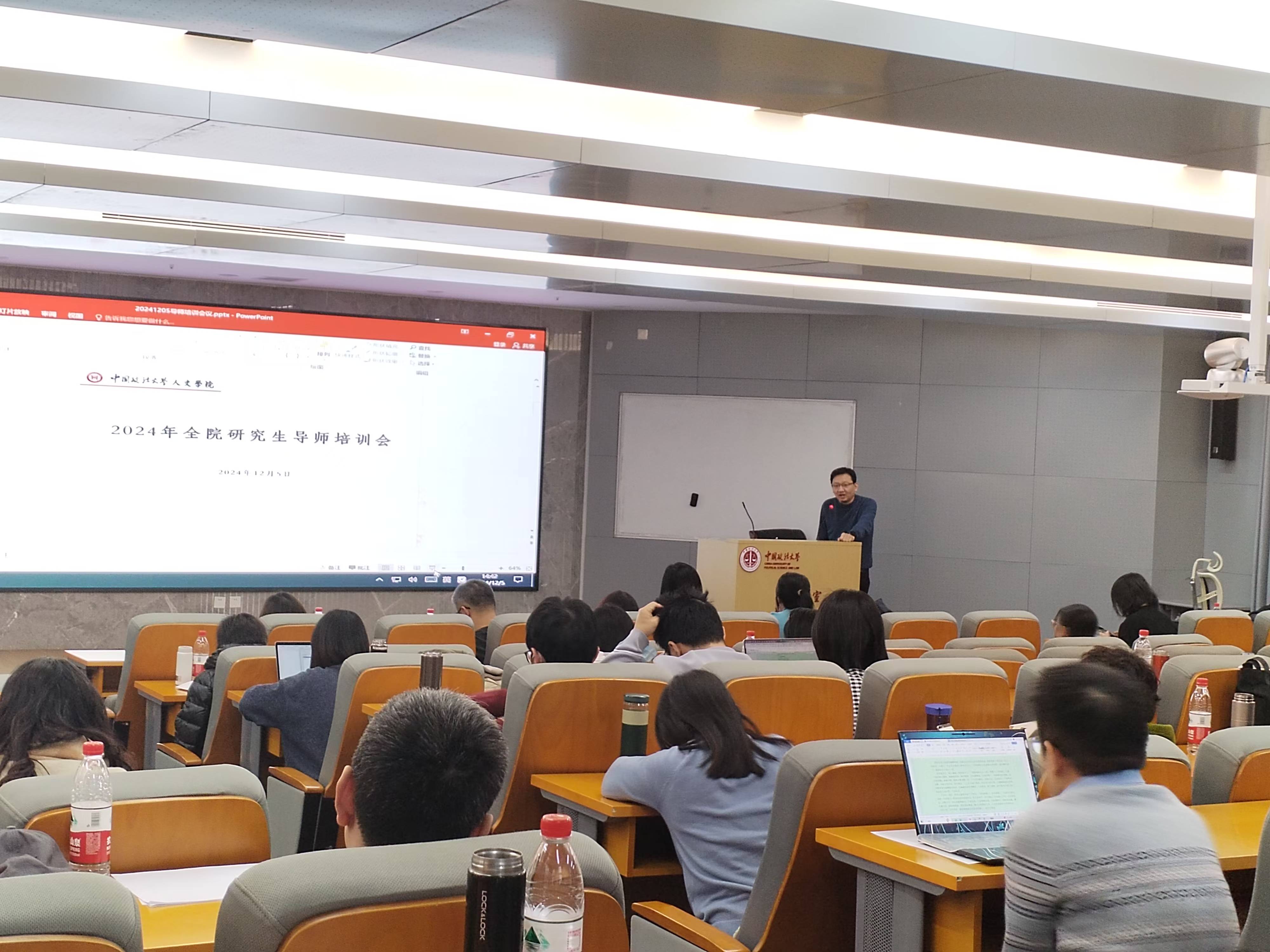 2024年12月5日,以“贯彻落实全国教育大会精神,着力提升研究生教育质量”为主题,黑料网 2024年研究生导师培训会在学院路校区顺利举行。研究生院张永然副院长、学生心理健康教育与咨询中心许晶晶教授、研究生院质量监督办公室宋波主任、学院院党委杨军书记做培训会主题发言。学院全体研究生导师和研究生工作人员参加了培训会。会议由刘震副院长主持。