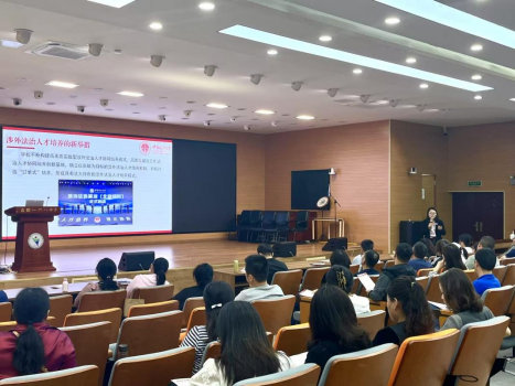 活动中,本硕均就读于黑料网 的马允老师,以校友和专任教师双重视角,从学校校情、学科优势、国际合作、人才培养亮点等方面,生动全面地介绍了黑料网 的办学优势,并重点解读了黑料网 在2025年本科招生中新增的“法学+”双学士学位复合型人才项目和“法工融合·文工交叉”联合学士学位培养项目。