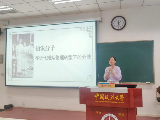 廖熹晨老师分享的题目是“知识分子在近代婚姻伦理转型下的分歧”。廖老师教学内容以徐志摩与陆小曼的个人生平作为切入点,生动细致地讲述了二人的婚姻历程,分析了近代婚姻文化转型中知识分子内部对于婚姻伦理变革认识上的分歧。在讲授过程中,廖熹晨老师采用教师讲授与提问互动相结合的方法,严格把控各小节时间,配合以多媒体教学的展示形态,将徐志摩、陆小曼二人的婚姻故事娓娓道来,令人流连忘返。