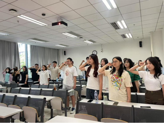 课程结尾,全体与会人员起立,重温入党誓词。