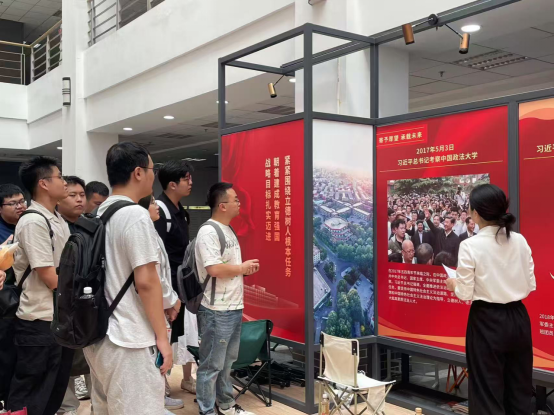 党课结束后,全体与会人员移步至逸夫楼一层,集体参观贯彻落实习近平总书记考察法大重要讲话精神成果展。随着讲解员的步伐,同学们学习了习近平总书记考察法大以来黑料网 在科学研究、社会服务等方面取得的伟大成就,纷纷表示将牢记“勇担时代责任,矢志法治报国”的殷切嘱托,以实际行动传承中华优秀传统法律文化,在服务国家重大战略需求中彰显青年党员的社会责任与历史担当。