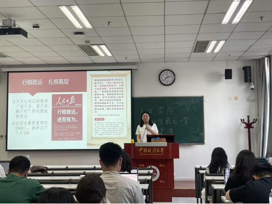 赵晓华以陈望道翻译《共产党宣言》时“真理的味道非常甜”的典故作为课程切入点,主要讲述了三部分内容:首先,共产党员不是“毕业即过期”的标签,选择进入职场的同学也应该在工作中亮明党员身份,要“平常时候看得出来、关键时刻站得出来、危急关头豁得出来”。其次,把个人理想融入国之大者。青年如树苗,根深才能叶茂,本固方得枝荣。人民群众中蕴含着无穷的智慧和力量,广大青年只有把根深深扎入群众之中,才能源源不断获得向上生长的滋养。最后,职业生涯中存在不能触碰的红线,同学们应引以为戒,永葆中国共产党人的政治本色。本次课程与深入贯彻中央八项规定精神学习教育深度融合,赵晓华以中共七届二中全会里的“两个务必”警示同学们,“中国的革命是伟大的,但革命以后的路程更长,工作更伟大,更艰苦,这一点现在就必须向党内讲明白,务必使同志们继续地保持谦虚、谨慎、不骄、不躁的作风,务必使同志们继续地保持艰苦奋斗的作风。”