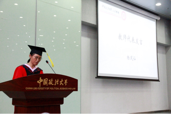 中文教研室杨凤仙教授向全体毕业生献上最热烈的祝贺。人生是一场充满惊喜的旅程,毕业不是终点站,而是通往更广阔天地的起点。杨凤仙期许即将扬帆远航的毕业生们心怀家国、坚守初心,严于律己、求实创新,以法大人“挥法律之利剑,持正义之天平,除人间之邪恶,守政法之圣洁”的共同使命担当来诠释正义,用人文之光照亮法治征程。拓荒牛劲破千嶂,小月河柔启新章,杨凤仙代表全体老师祝毕业生们前程似锦、内心丰盈,事业有成、精神自由。后会有期!